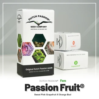 Passion Fruit stammt aus einer Kreuzung zwischen Orange Bud und Sweet Pink Grapefruit. Dutch Passion erhielt von einem vertrauenswürdigen Freund in Belgien einen prächtigen Klon von Sweet Pink Grapefruit. Dem Team war schnell klar, dass sie aus dieser Sorte eine neue Saatgutsorte entwickeln mussten. Sweet Pink Grapefruit und Orange Bud sind beides hoch angesehene Sorten. Wenn sie miteinander kombiniert werden, ist das Ergebnis sogar noch besser als die beiden Elternsorten.