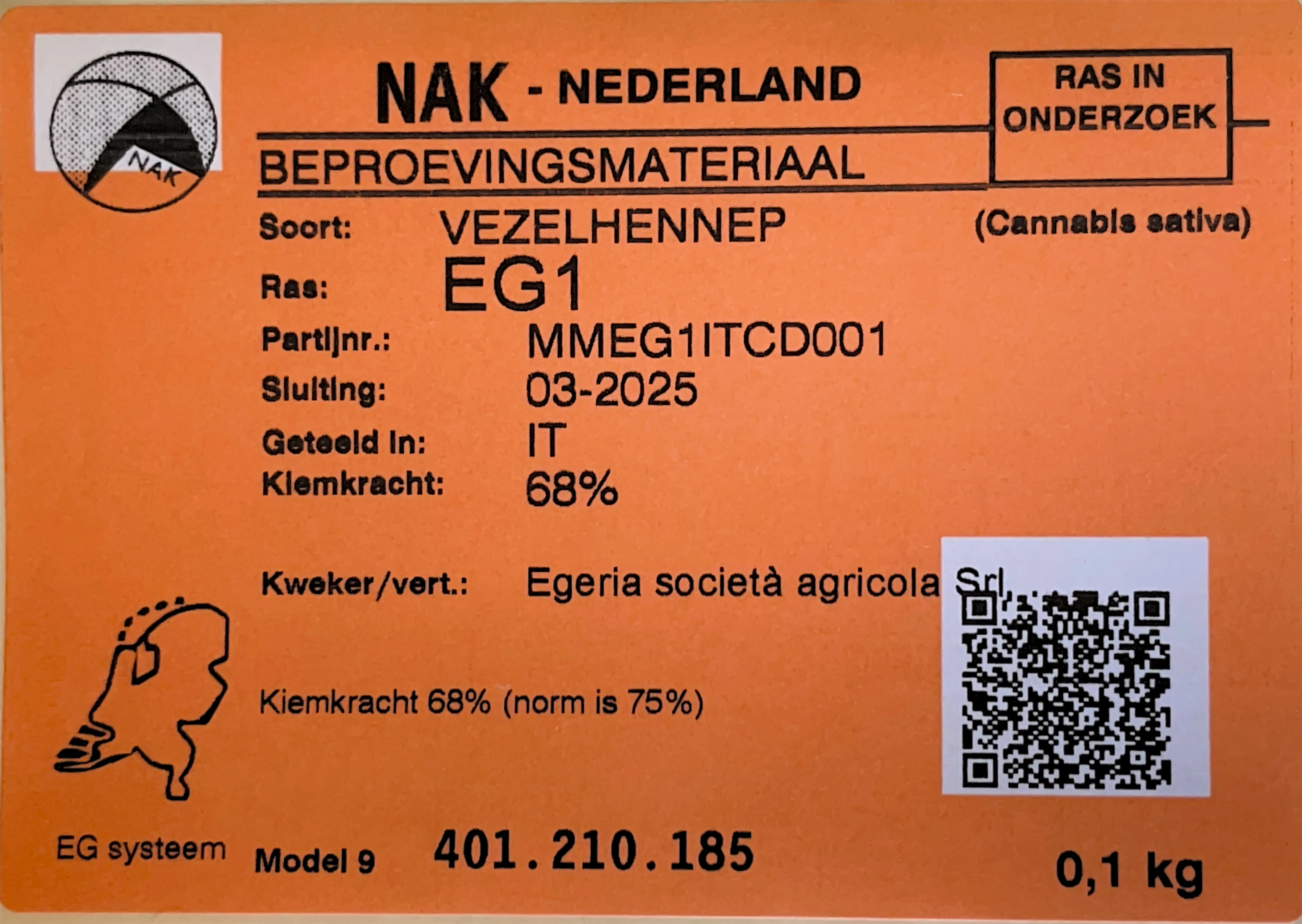 EGERIA - EG1 (CBD) SEMI DI CANAPA CERTIFICATA